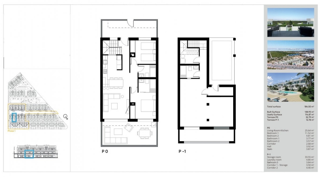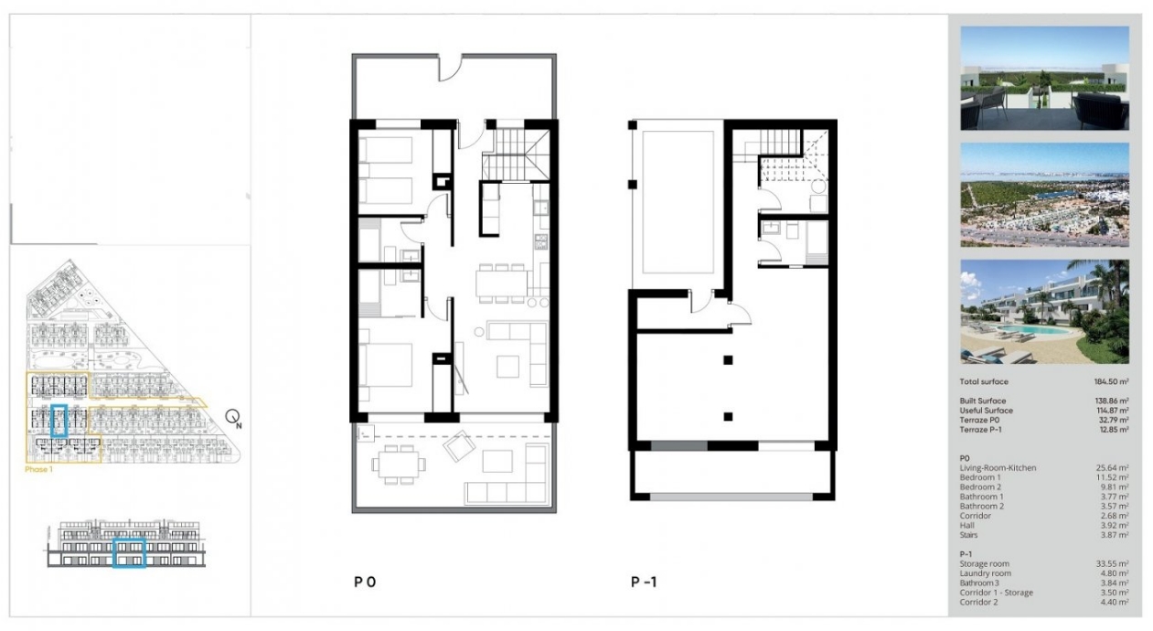 Deze eigentijdse bungalows op de begane vloer biedt 3 slaapkamers en 3 badkamers, een open keuken, ruime woonkamer, inbouwkasten, terras, privé solarium en ondergrondse parkeerplaats. Geniet van luxe voorzieningen, waaronder tuinen, tuin-gym, speeltuin, en 2 gemeenschappelijke zwembaden. Gunstig gelegen nabij Torrevieja, staat deze regio bekend om zijn mediterrane klimaat, prachtige kustlijn en rijke geschiedenis. Ontdek de perfecte mix van modern comfort en natuurlijke schoonheid in dit exclusieve complex.