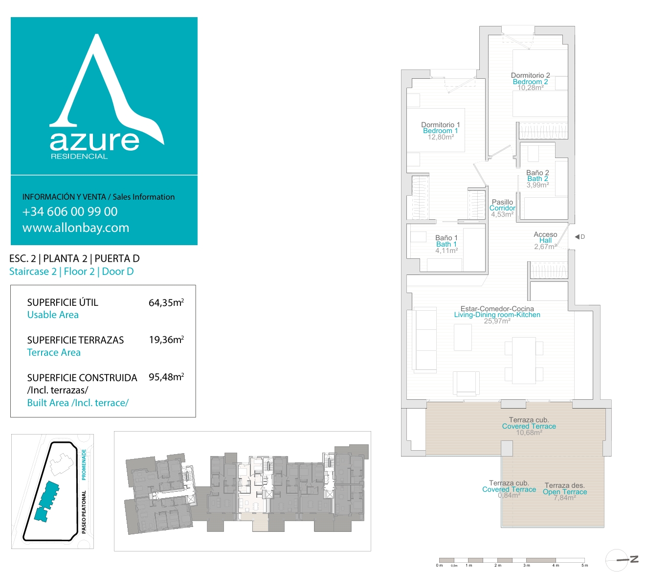 Dit appartement is gelegen op de eerste of tweede verdieping en is voorzien van 2 slaapkamers met 2 badkamers. Er is een ruime leefruimte met een open keuken. De keuken is voorzien van LED-verlichting onder de keukenkasten en de volgende elektrische apparaten: inductiekookplaat, elektrische oven, afzuigkap, magnetron, vaatwasser én koelkast. Vanuit de woonkamer heb je prachtig zicht op jouw priveterras met zicht op zee! Er zijn 2 slaapkamers met elk een aansluitende badkamer. De slaapkamers zijn voorzien van inbouwkasten met hangrekken en lades. Alle badkamers zijn uitgerust met een regendouche in antislip, douchescherm, wastafel met spiegel, mengkranen. De gehele badkamer is afgewerkt in keramische tegels. De hoofdslaapkamer heeft een ruime inloopdressing en badkamer-ensuite.