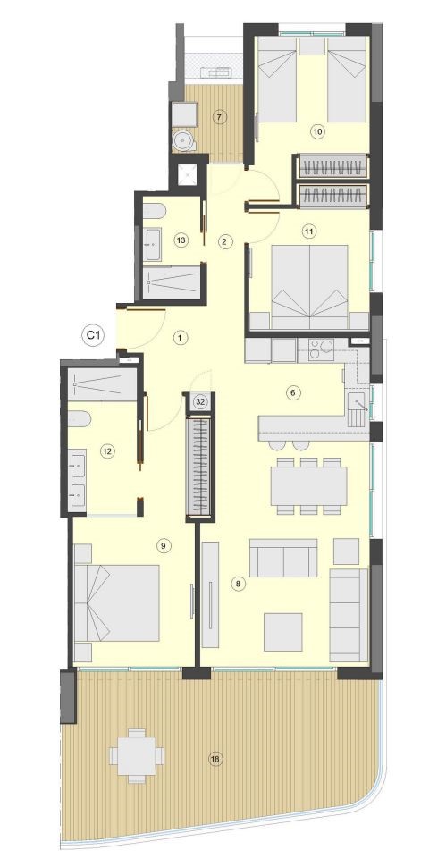 Er is een ruime woonkamer voorzien met open keuken die uitkijkt op jouw balkon. Er is een balkon voorzien van 30m². Elke woning heeft een ondergrondse parkeerplaats toegewezen. Deze is te bereiken via een gemeenschappelijke oprit met automatische poorten.