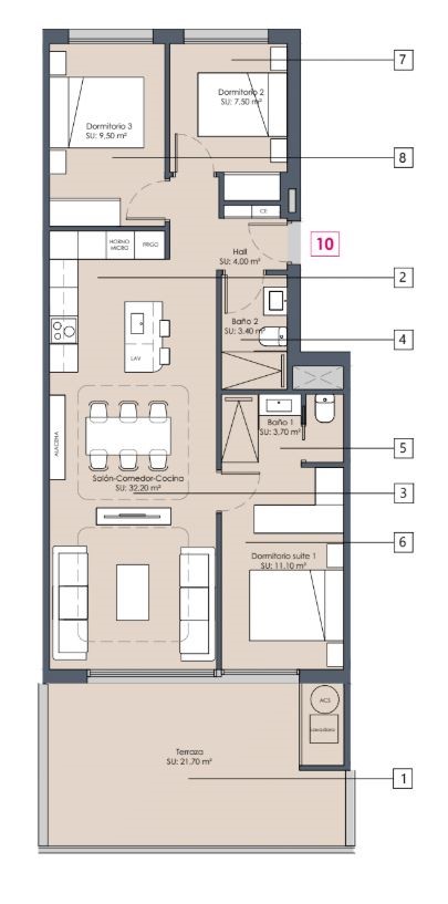 3   2   119 m²   8 m²