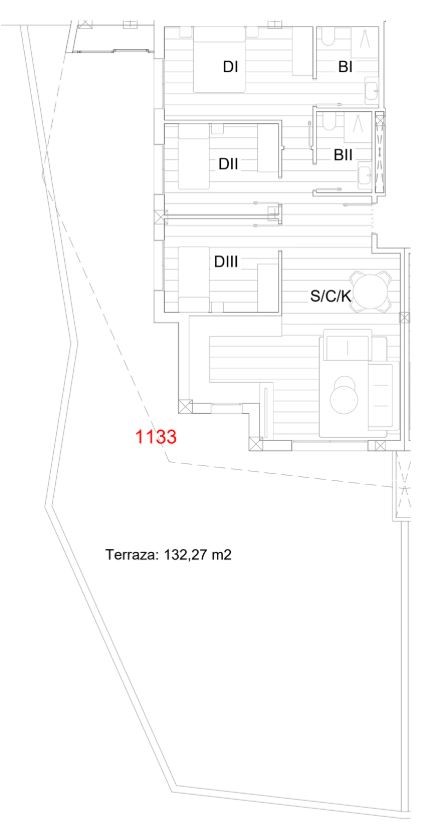 | Gelijkvloers appartement | 3/2 | 173m² | 92m² |