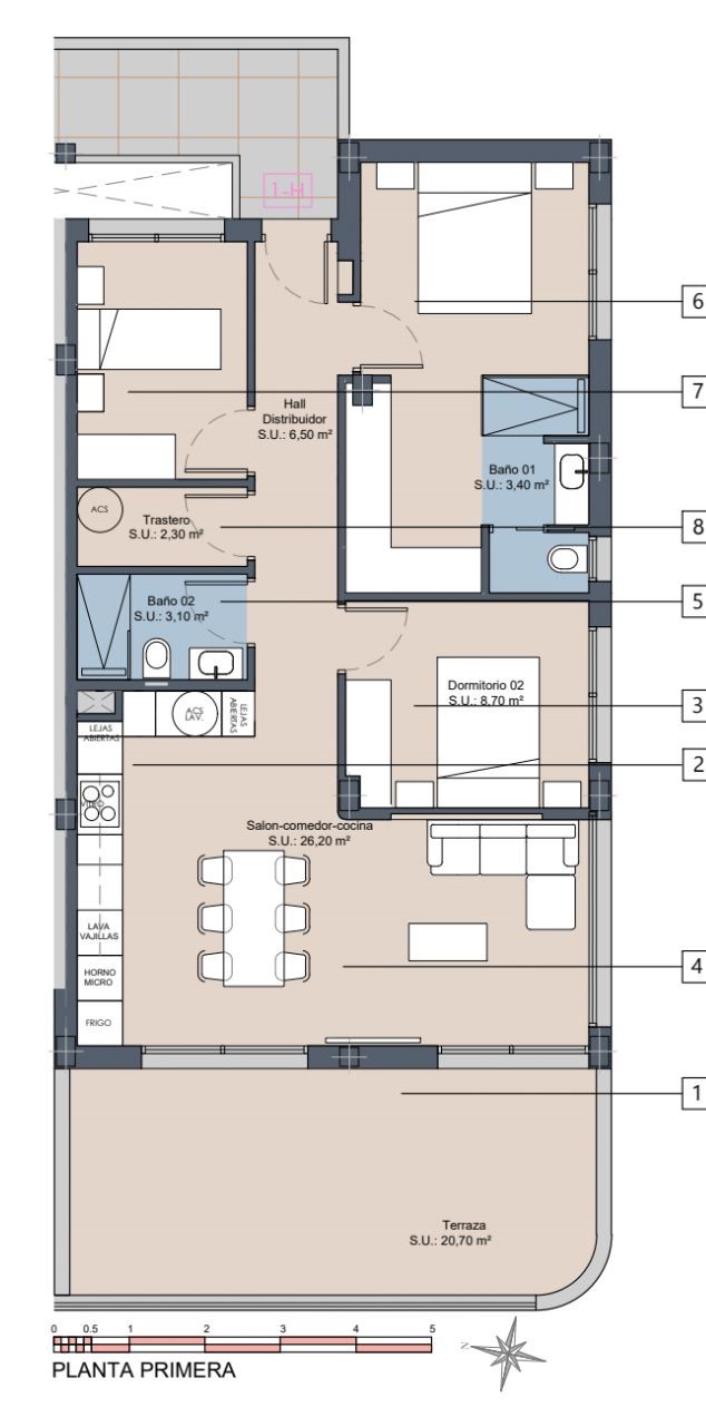 De buitenruimte is zonder twijfel een van de grootste troeven: een aangelegd terras van 20m². In combinatie met het gemeenschappelijk zwembad, de rustige residentie en de ligging nabij zee en golf, is dit appartement ideaal als vaste woonst, tweede verblijf of waardevaste investering aan de Costa Cálida.