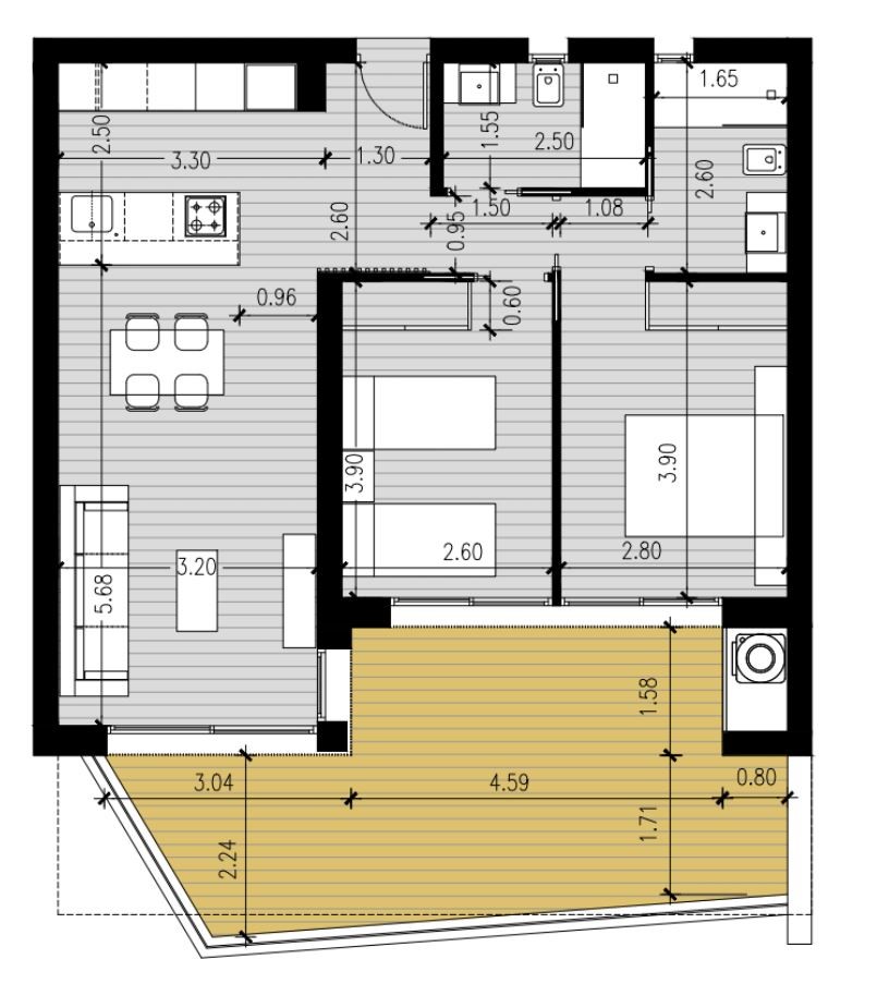 | Penthouse | 2/2 | 101m² | 77m² | €295.000 |