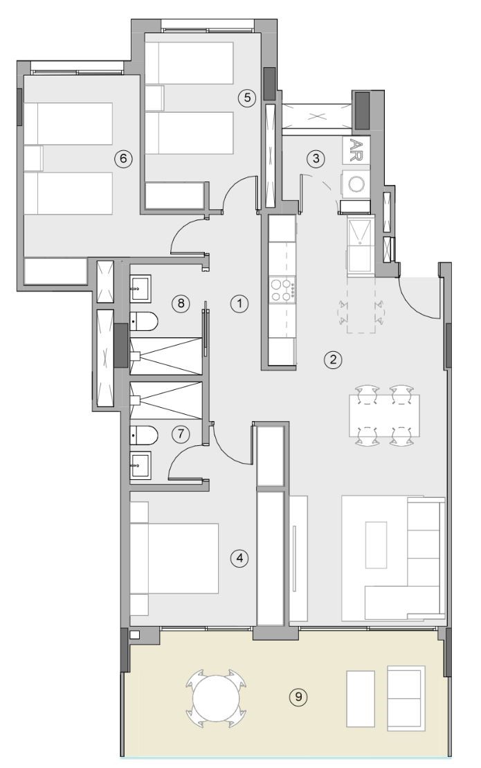 APPARTEMENT - 3 SLAAPKAMERS – 2 BADKAMERS – RUIM TERRAS – RESORTFACILITEITEN