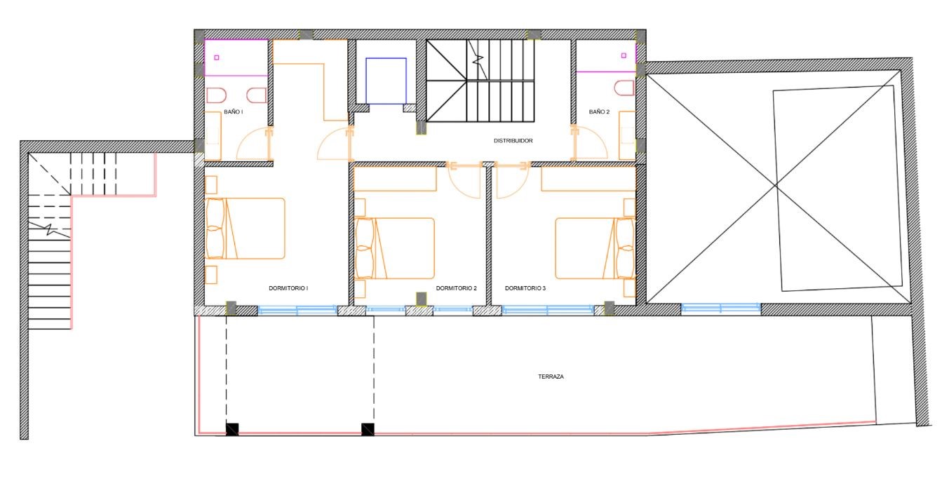 Op de verdieping erboven, zijn de eerste 3 slaapkamers gelegen. De hoofdslaapkamer heeft een badkamer-ensuite, lounge én inloopdressing. De tweede en derde slaapkamer delen een badkamer. Aansluitend aan alle slaapkamers is er een terras voorzien van 51m². Alle slaapkamers zijn voorzien van inbouwkasten met hangrekken, legplanken en lades. De badkamer is uitgerust met een douche, wastafel met bijpassend meubel, spiegel en toilet.