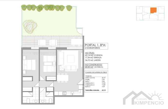 Dit stijlvolle appartement biedt een perfecte combinatie van praktisch wooncomfort en private buitenruimte. Ideaal als tweede verblijf, investering of permanente woonst aan de Costa Blanca. Met 80 m² woonoppervlakte, een 17 m² terras en een privétuin/perceel van 34 m² geniet je van het mediterrane buitenleven in alle privacy.