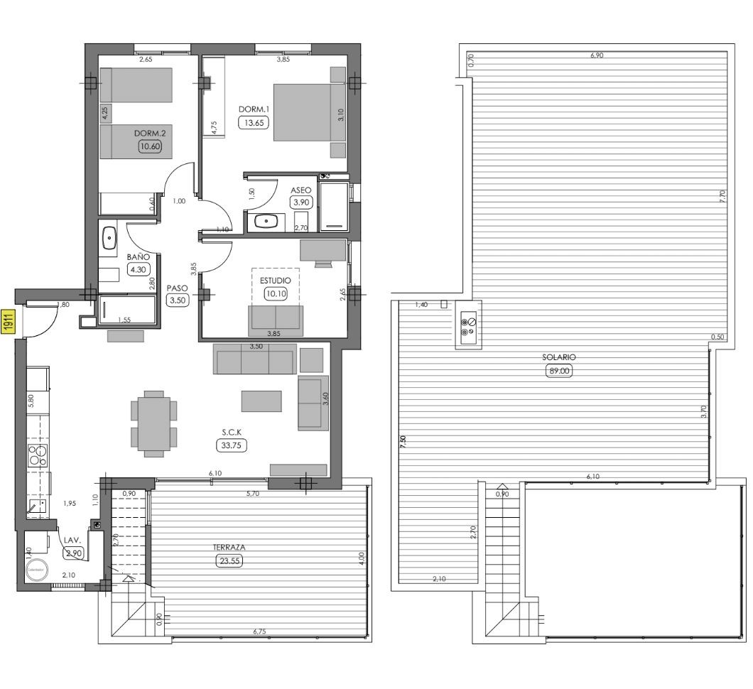 Balkon van 23.5m² en solarium van 89m².