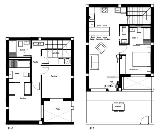 Deze moderne bungalow in Torrevieja is verdeeld over twee verdiepingen en biedt drie ruime slaapkamers met elk een eigen badkamer. De onderbouw is slim ingericht met twee slaapkamers, een wasruimte en een patio die zorgt voor veel natuurlijk licht, terwijl de begane grond een lichtrijke leefruimte met open keuken en hoofdslaapkamer met badkamer-ensuite biedt.