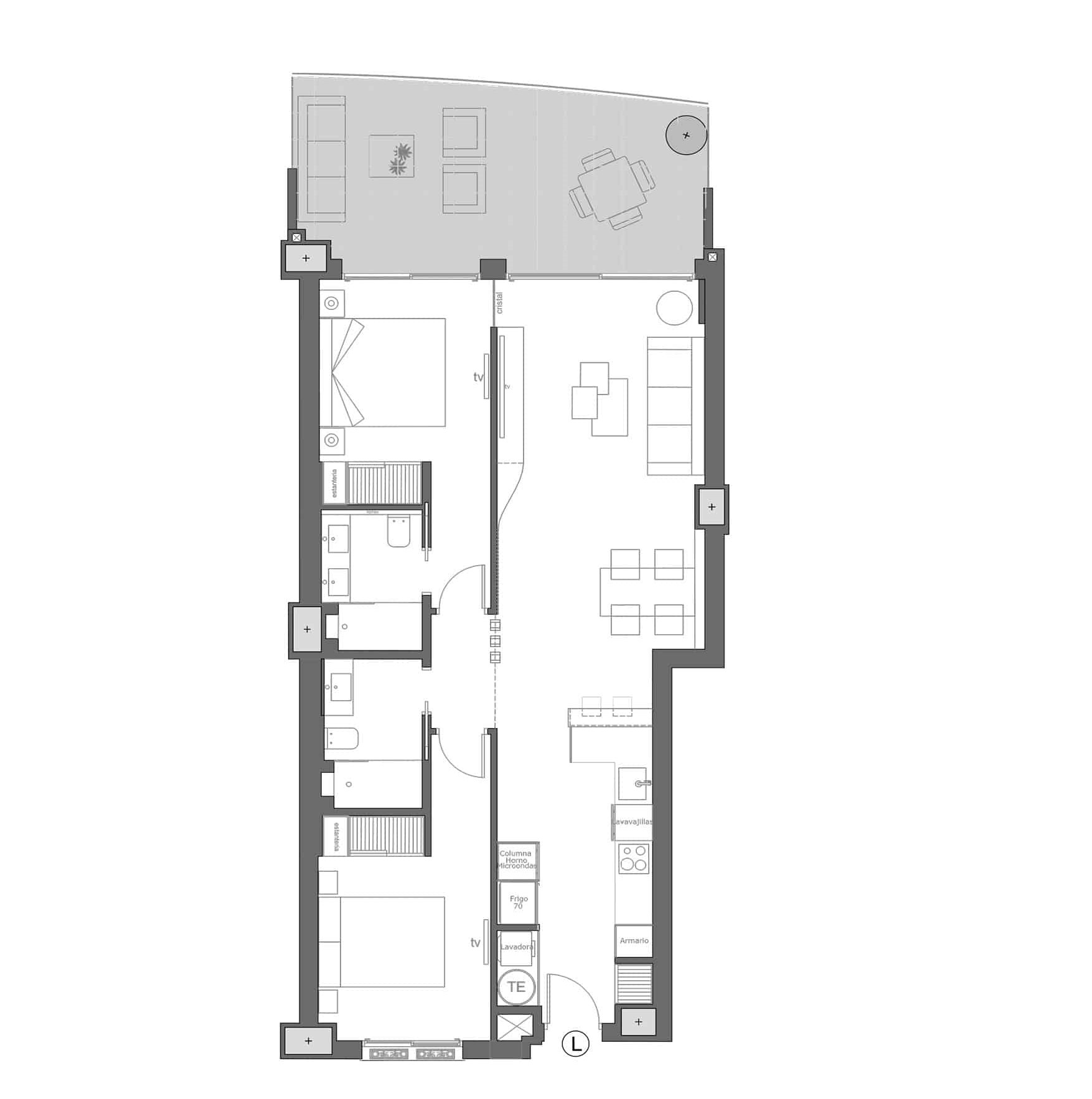 Deze woning is voorzien van 2 slaapkamers met 2 badkamers. Elke badkamer is volledig uitgerust en de slaapkamers worden met inbouwkasten geleverd. Elke woning heeft uniek eerstelijn-zeezicht. De gebouwen zijn zodanig ingericht dat elke resident hiervan kan genieten.
