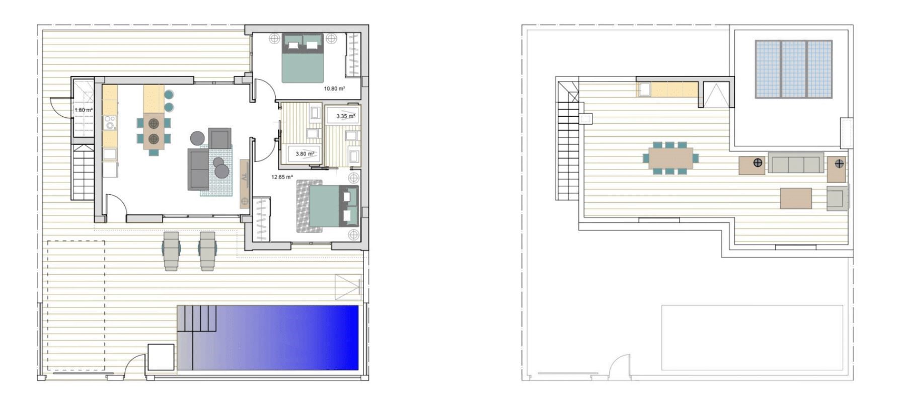 Het ontwerp van de villa's werd geïnspireerd op geografische vormgeving waardoor deze woningen een uiterst hedendaagse uitstraling hebben die iedereen zal bekoren: Treed binnen in jouw moderne droomwoning. Deze gelijkvloerse villa's bevatten 2 slaapkamers, 2 badkamers, zonovergoten terrassen, een privé zwembad en prachtig solarium waar wij nu al jaloers op zijn na het bekijken van de foto's. De woningen zijn gebouwd in een omheind, beveiligd resort met alle benodigde recreatiemogelijkheden voor jong en oud. Geniet van het prachtig natuurgebied en ga gerust golfen, padellen of petanquen: in dit unieke woonresort kan het allemaal zonder de auto of fiets te moeten bovenhalen.