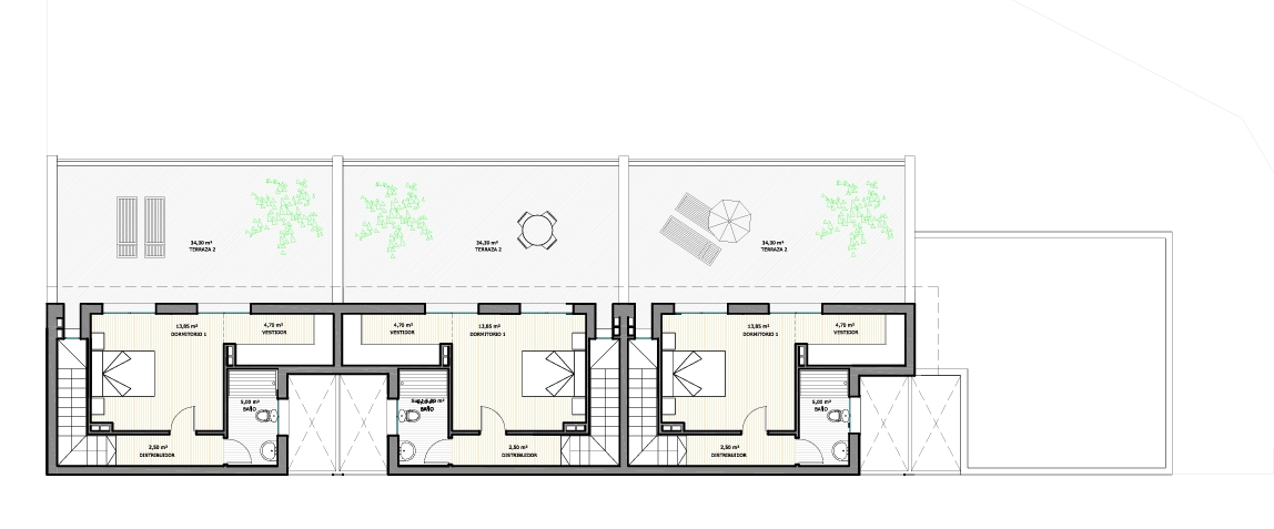 De scheidingsvloeren tussen de woningen zijn bovendien uitgerust met een anti-impactlaag om geluidsoverdracht te verzekeren