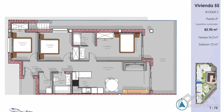 | Penthouse | 3 | 85.90 | 24.30 + solarium |