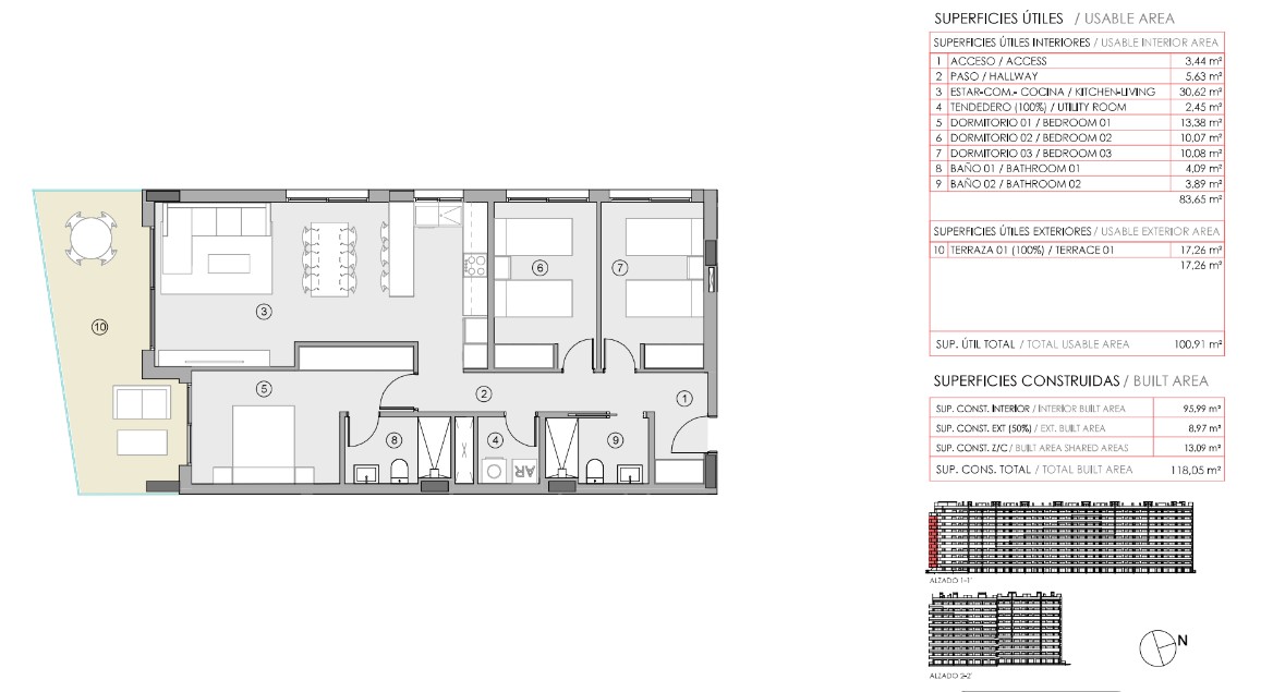 | Tussenverdiep type 6 | 3/2 | 118 m² | 17 m² | €404.000 |