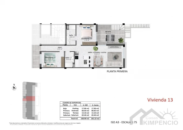 De appartementen op de begane grond zijn voorzien van twee of drie slaapkamers, een open indeling tussen de woonkamer en keuken, en een royale patio met uitzicht op het gemeenschappelijke zwembad. De bovenste verdieping biedt een schitterend dakterras met een afgesloten zomerkeuken, een pergola, toilet en kunstgras – perfect voor ontspanning onder de zon. De urbanisatie zelf straalt rust en comfort uit, met een gemeenschappelijk zwembad en groene zones waar je het hele jaar door kunt genieten van de zon.