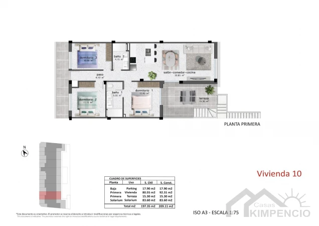 De appartementen op de begane grond zijn voorzien van twee of drie slaapkamers, een open indeling tussen de woonkamer en keuken, en een royale patio met uitzicht op het gemeenschappelijke zwembad. De bovenste verdieping biedt een schitterend dakterras met een afgesloten zomerkeuken, een pergola, toilet en kunstgras – perfect voor ontspanning onder de zon. De urbanisatie zelf straalt rust en comfort uit, met een gemeenschappelijk zwembad en groene zones waar je het hele jaar door kunt genieten van de zon.
