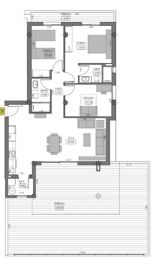 Deze woning is gelegen op de gelijkvloerse verdieping en voorzien van 3 slaapkamers met 2 badkamers. Bij het betreden van de woning bereik je de ruime leefruimte met open keuken. De keuken en woonkamer kijken via grote schuiframen uit op het voorterras van 79m².