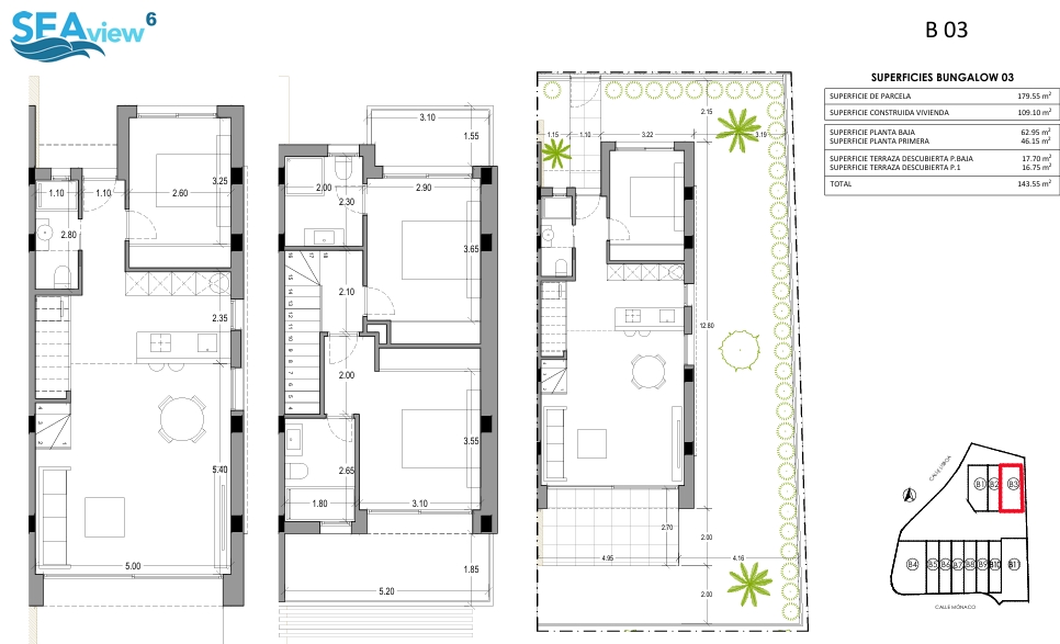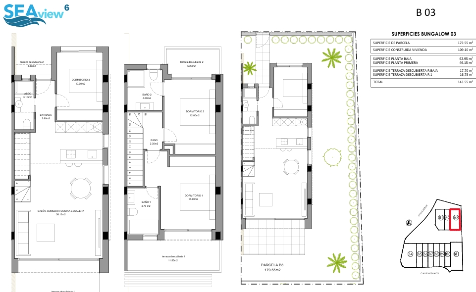 Deze halfvrijstaande woning is gelegen op een hoek. Hierdoor zijn de buitenruimtes groter, dan de rijwoningen. Afhankelijk van exact welk perceel, verschillende oppervlaktes. Met een minimale buitenruimte van 50m² kan je optimaal genieten van de Spaanse zon!