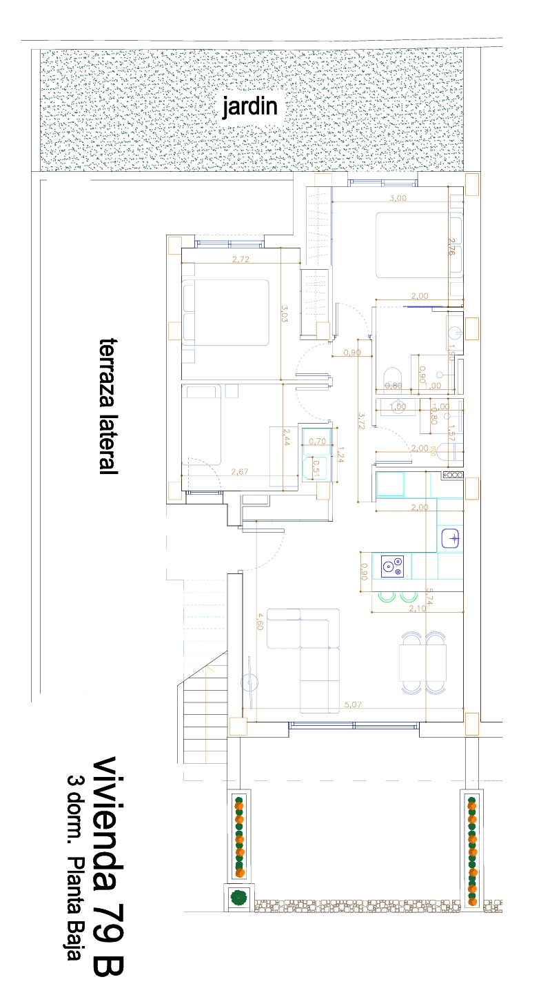 - Eén begane grond appartement met 3 slaapkamers, 2 badkamers en een ruime tuin.