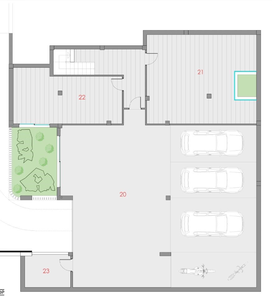 Ze hebben een kelder (afgewerkte onderbouw)van 260 m² met een privégarage voor 3 voertuigen, 4 slaapkamers, 1 gastentoilet en 3 badkamers.