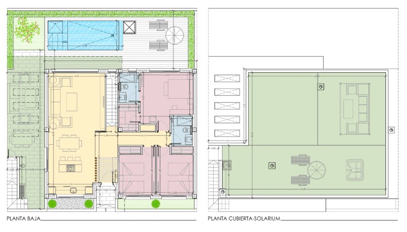 Op de eerste verdieping is het solarium gelegen van 116m². Hier kan je de hele dag door genieten van de Spaanse zon en de meest magnifieke zichten op de zoutlagunes van La Mata. Rondom de woning zijn er heel wat terrassen aangelegd, zodat je vanuit verschillende invalshoeken kan genieten van de buitenruimte. Sommige terrassen zijn overdekt, andere zijn dan weer open. Er is ook een zwembad voorzien met buitendouche. De gehele villa is omheind waardoor jouw veiligheid en comfort centraal staat.