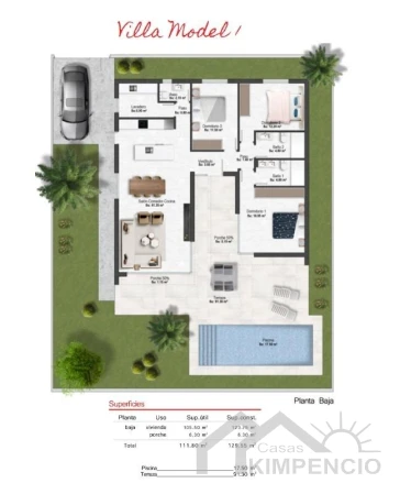 Ruim ontwerp met privétuin en zwembad en gebouwd op een privéterrein van 357 m², met voldoende buitenruimte om het hele jaar door van de zon te genieten.