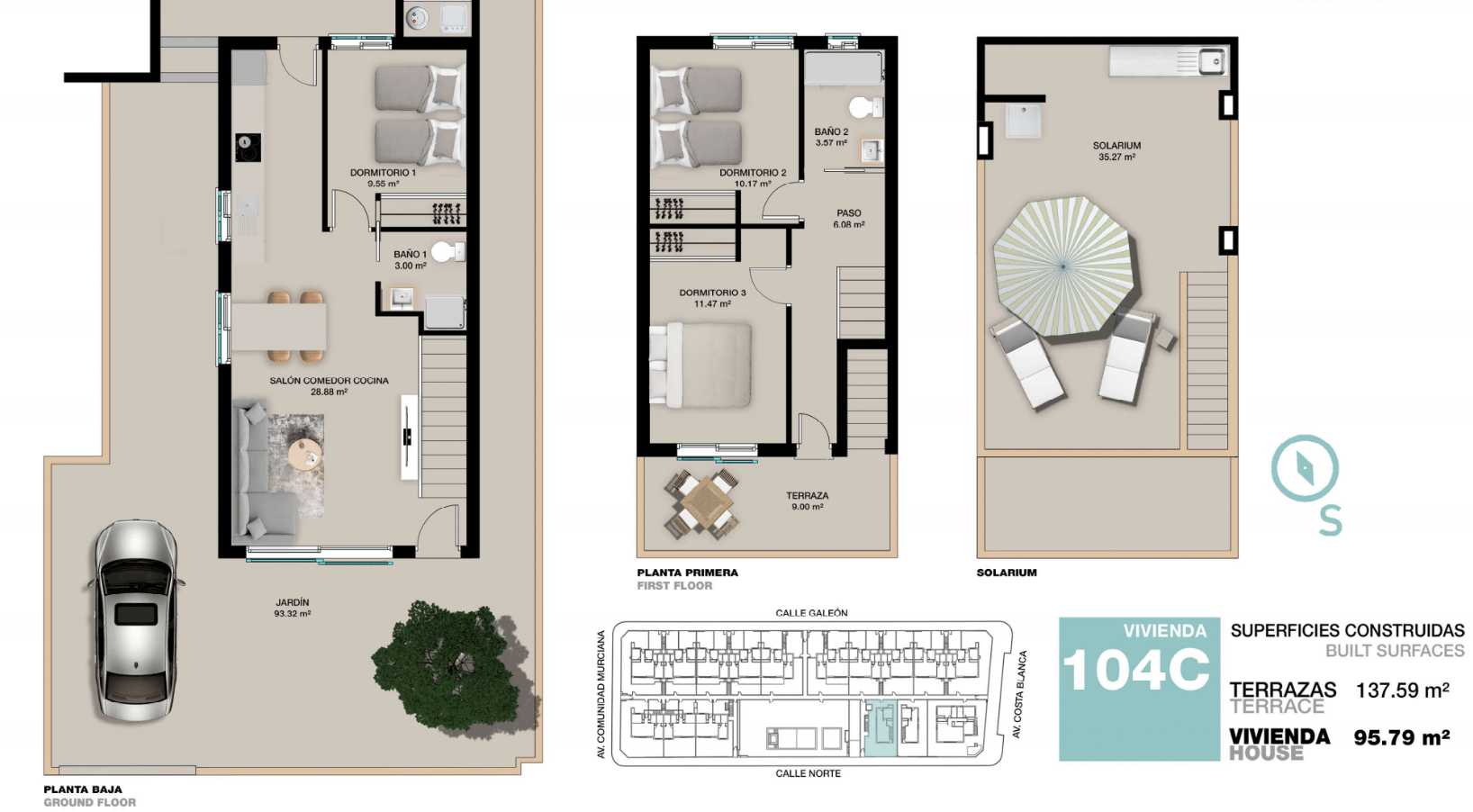 Welkom in deze moderne geschakelde woning binnen het kwaliteitsvolle nieuwbouwproject Portomarina Plaza in Torre de la Horadada. Slechts 800 meter van het strand vind je hier een eigentijdse woning die het beste van mediterrane levenskwaliteit combineert met modern wooncomfort. Deze prachtige geschakelde woning strekt zich uit over twee verdiepingen en beschikt over een privé solarium, met een zuidgerichte oriëntatie die zorgt voor maximale zon en lichtinval.