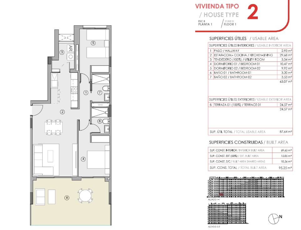 | Gelijkvloers type 2 | 2/2 | 95 m² | 24 m² | €320.000 |