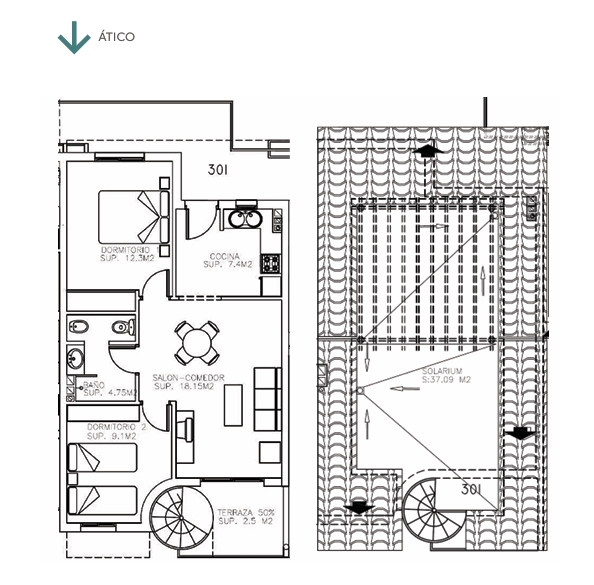 Dit penthouse beschikt over 2 slaapkamers en 1 badkamer met een efficiënte en praktische indeling.
