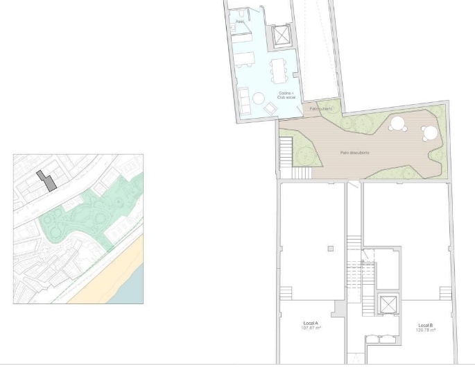 Er zijn ook heel wat gemeenschappelijke voorzieningen, zoals een gemeenschappelijk solarium met ligbedden en parasols. Op dat solarium is er een uitgeruste fitnessruimte met sauna voorzien, in de fitnessruimte is er een toilet aanwezig. Het gebouw betreden doe je via een gezellige Engelse patio. Op het gelijkvloers van het gebouw is er een social club voorzien, met uitgeruste lokalen. Hier kan je ook eventueel aan thuiswerk doen, in een gemotiveerde omgeving.