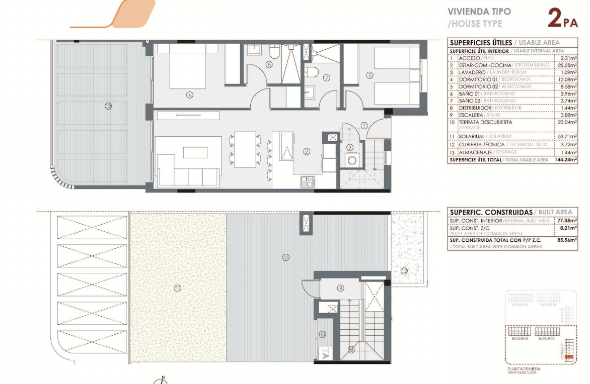 Dit stijlvolle penthouse in Sunset Village onderscheidt zich door zijn moderne architectuur, royale buitenruimtes en een uitzonderlijk gevoel van licht en rust. De woning beschikt over twee comfortabele slaapkamers, twee verfijnde badkamers, een open en bijzonder heldere leefruimte én een ruim overdekt terras dat perfect aansluit op het mediterrane buitenleven. Via de interne trap bereik je het indrukwekkende privésolarium van ruim 53 m²: een ideale plek om te ontspannen, te loungen of te genieten van lange zomeravonden in volledige privacy. Dankzij de doordachte indeling, hoogwaardige afwerking en de ligging binnen een urbanisatie met uitgebreide resortvoorzieningen biedt dit penthouse een zorgeloze en luxueuze woonervaring op enkele minuten van zee, natuur en alle dagelijkse voorzieningen.