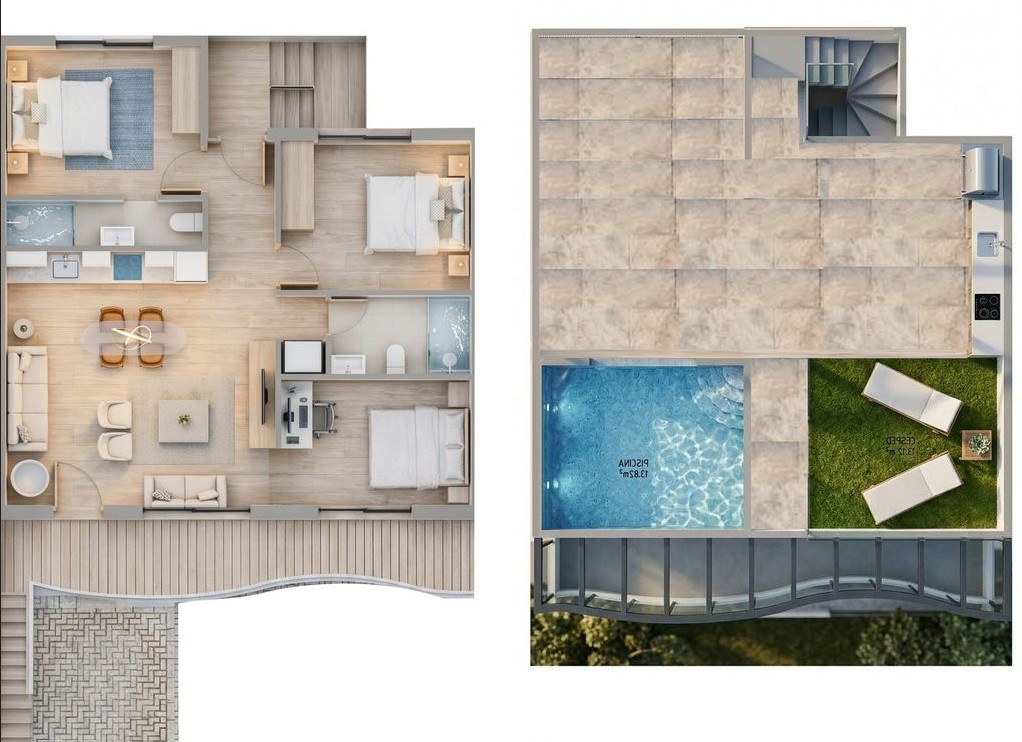 - De woning beschikt over een privézwembad en een ruim dakterras, waardoor binnen- en buitenleven naadloos in elkaar overvloeien