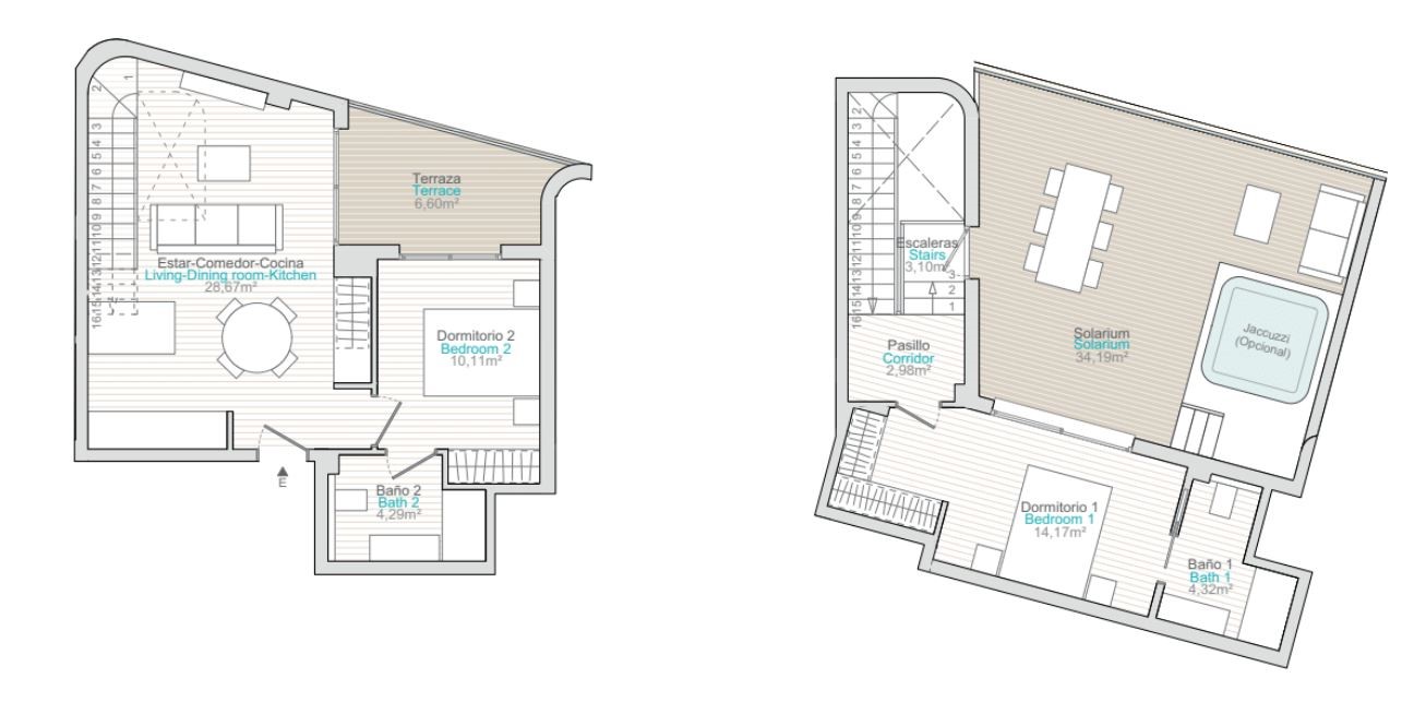 Deze woningen zijn gelegen in Villajoyosa in de noordelijke Costa Blanca. De woningen zijn gelegen op wandelafstand van het strand en genieten van prachtig zeezicht. Deze woning is gelegen op de bovenste verdieping en is voorzien van 2 slaapkamers met 2 badkamers.