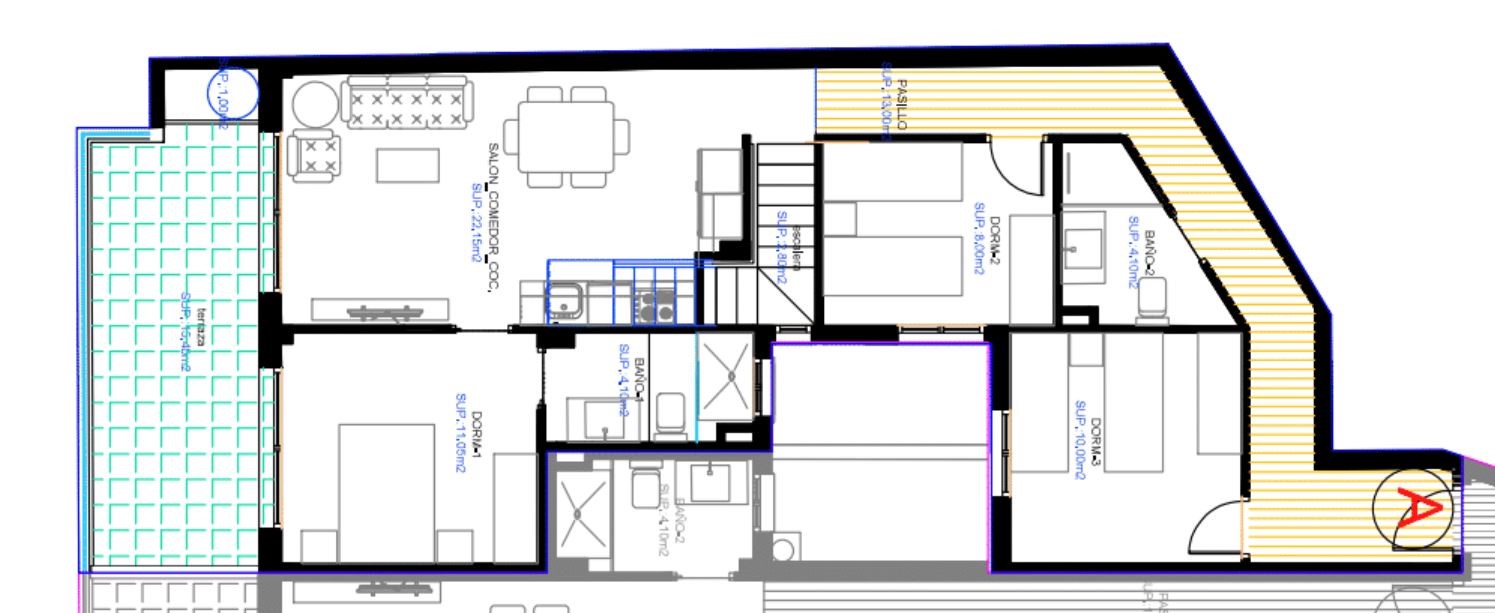 Deze woning is gelegen op een tussenverdieping, waardoor deze geniet van een balkon van 15m². Daar geniet je van prachtig zicht over Torrevieja. Een verdieping hoger, is jouw eigen privésolarium gelegen van 41m².
