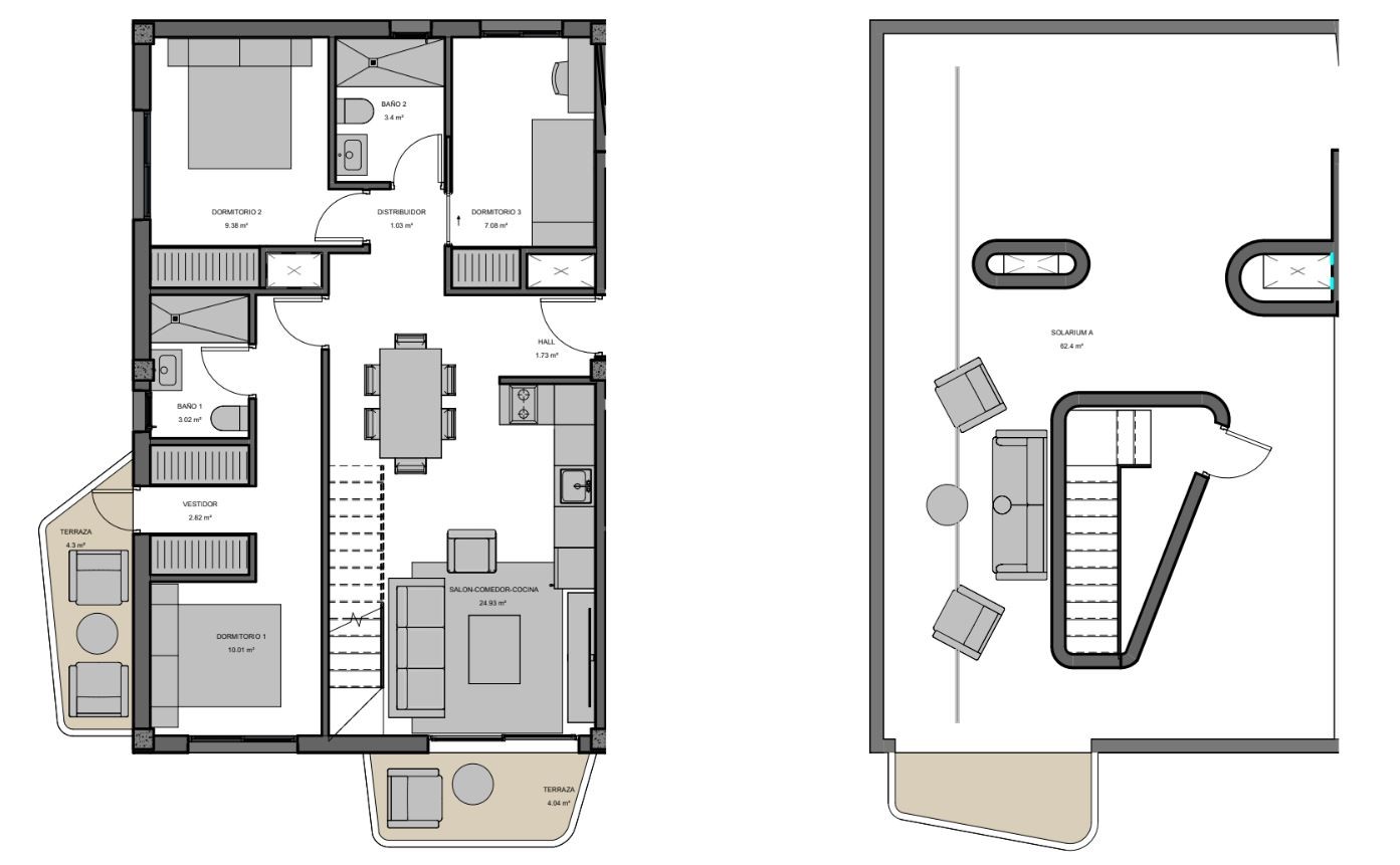 | Penthouse met solarium | 3/2 | 71m² | 74m² | €600.000 |