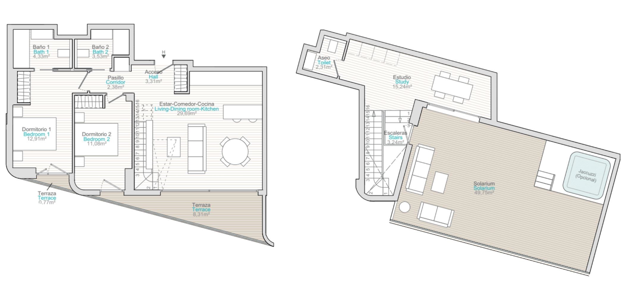 | Penthouse | 2/2 | 58m² | 105m² | €548.000 |
