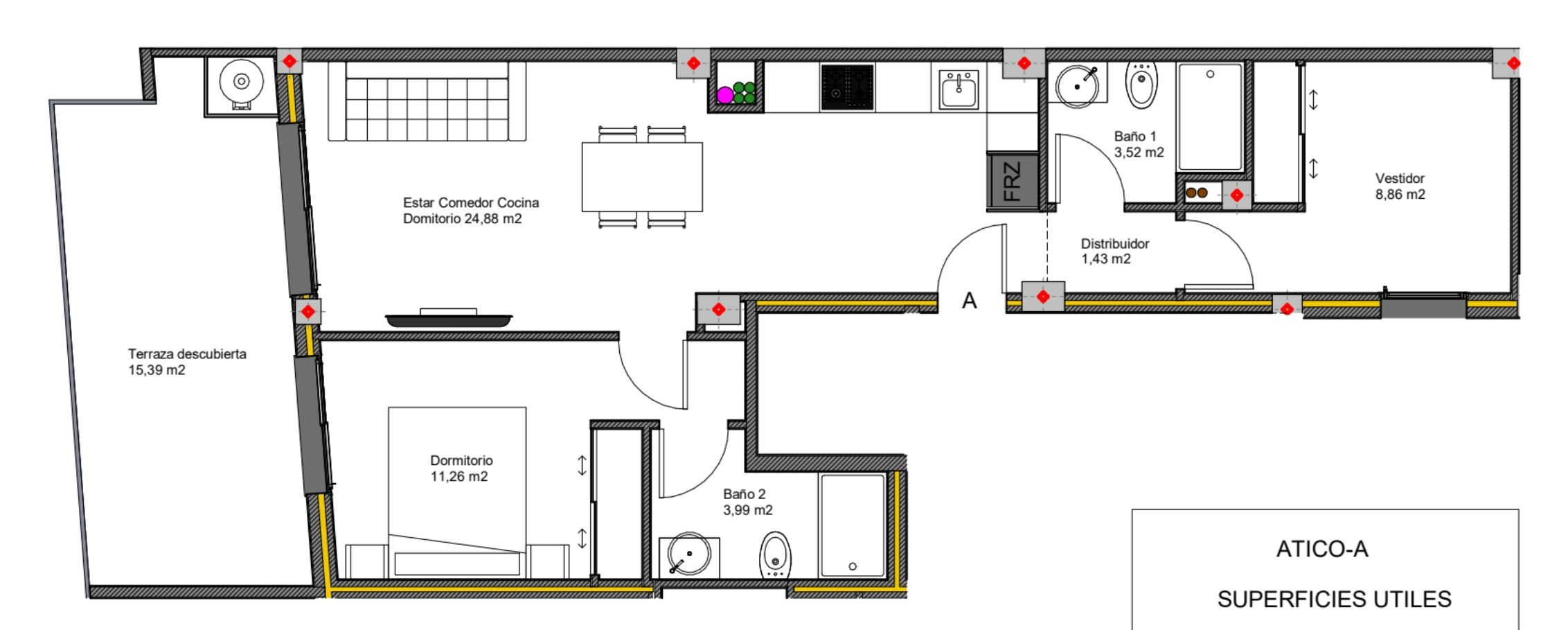 | Penthouse | 2/2 | 76m² | 15m² | €315.000 |