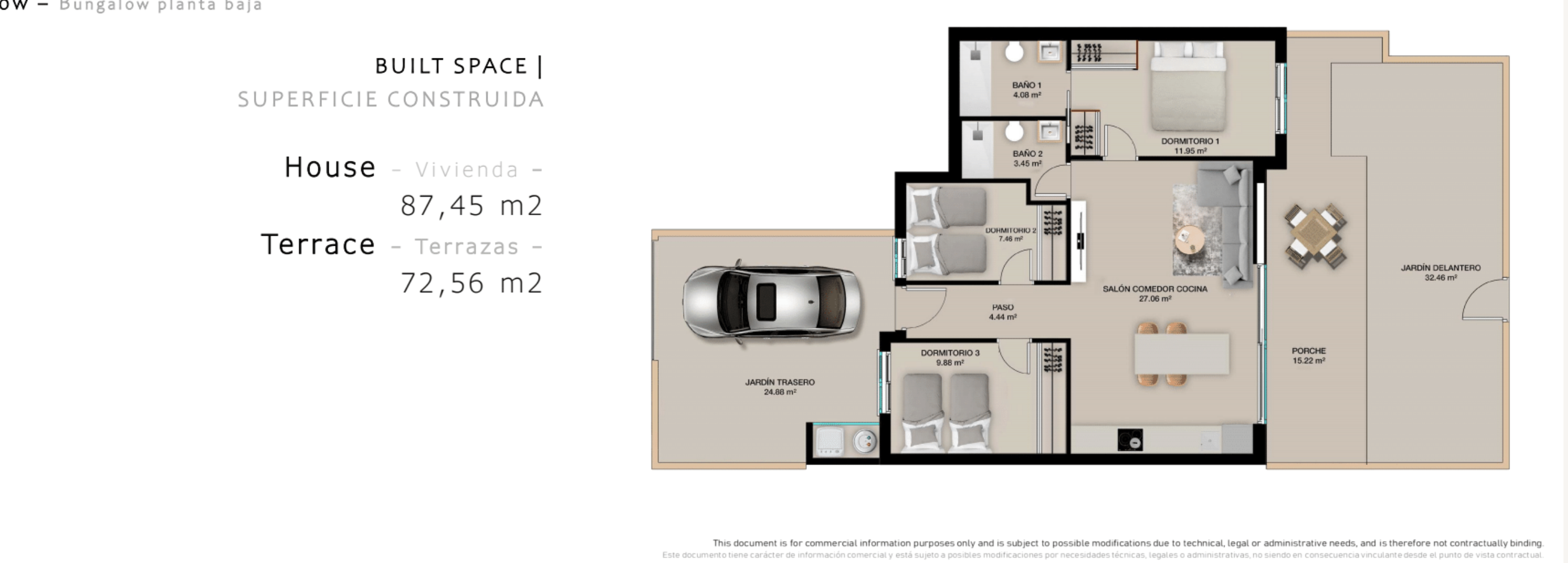 Zoals alle woningen binnen Portomarina Plaza is ook deze bungalow gebouwd volgens de hoogste kwaliteitsnormen. Je geniet van vloerverwarming in de badkamers, woonkamer en keuken, LED-verlichting binnen en buiten, een aerothermisch systeem voor warm water, energiezuinige isolatie en dubbele beglazing.