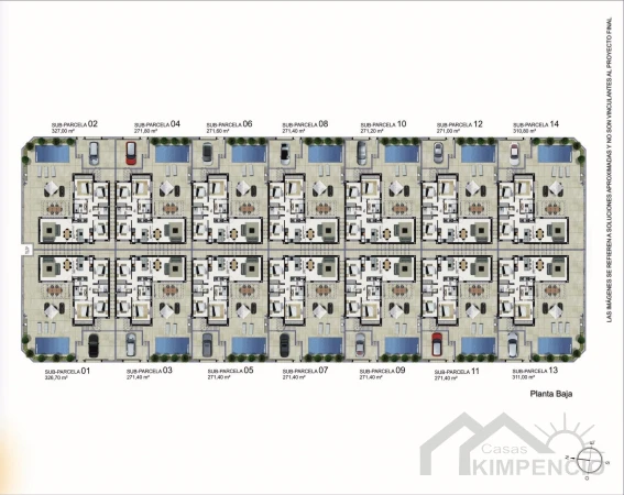 - Perceeloppervlakte: Varieert van 271,20 m² tot 327,00 m²
