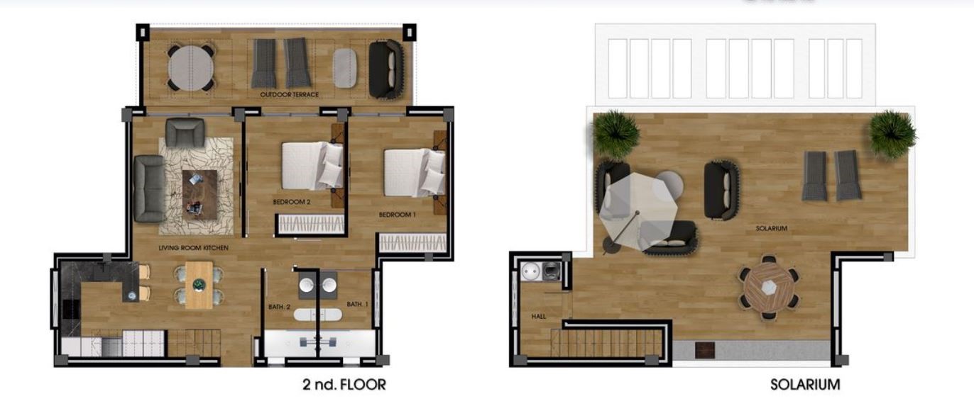 PENTHOUSE OP TWEEDE VERDIEPING - SOLARIUM - 2 SLAAPKAMERS EN 2 BADKAMERS