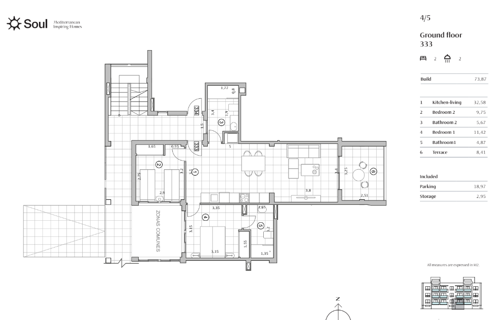 Geniet van comfort en authenticiteit in elke hoek, omgeven door natuurlijke texturen die een onderscheidende touch toevoegen. Dit wooncomplex maakt deel uit van een reeds gevormde gemeenschap met privétoegangen, een gemeenschappelijke parkeerplaats, tuinen en een zwembad. Gelegen in het bevoorrechte gebied van Villamartin-PAU8, biedt het een serene en gastvrije sfeer met afwerkingen in neutrale tinten.