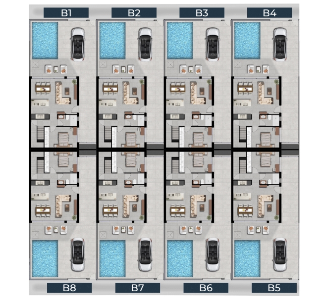 Deze moderne villa’s van een bij ons vertrouwde promotor combineren hedendaagse architectuur met een manier van wonen die volledig is afgestemd op het mediterrane leven: licht, open ruimtes en een sterke verbinding tussen binnen en buiten.