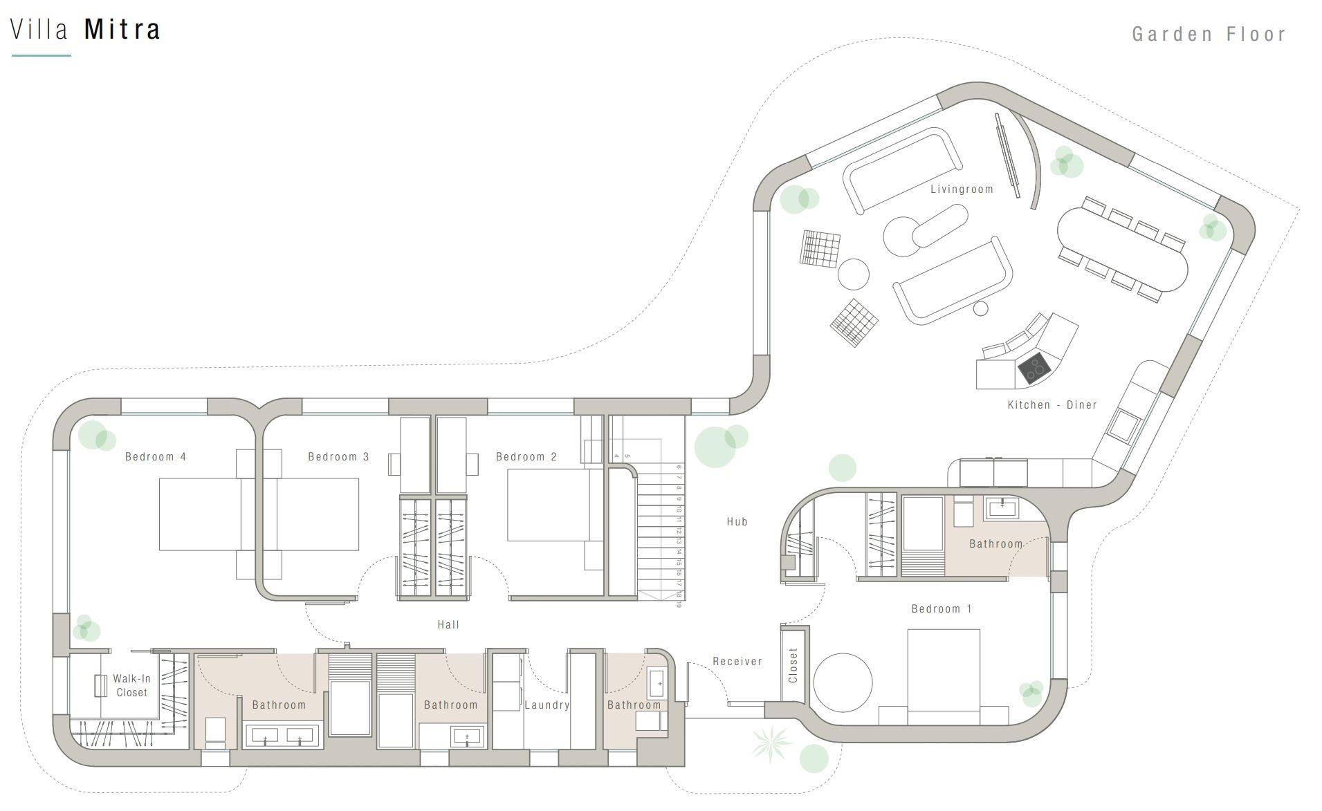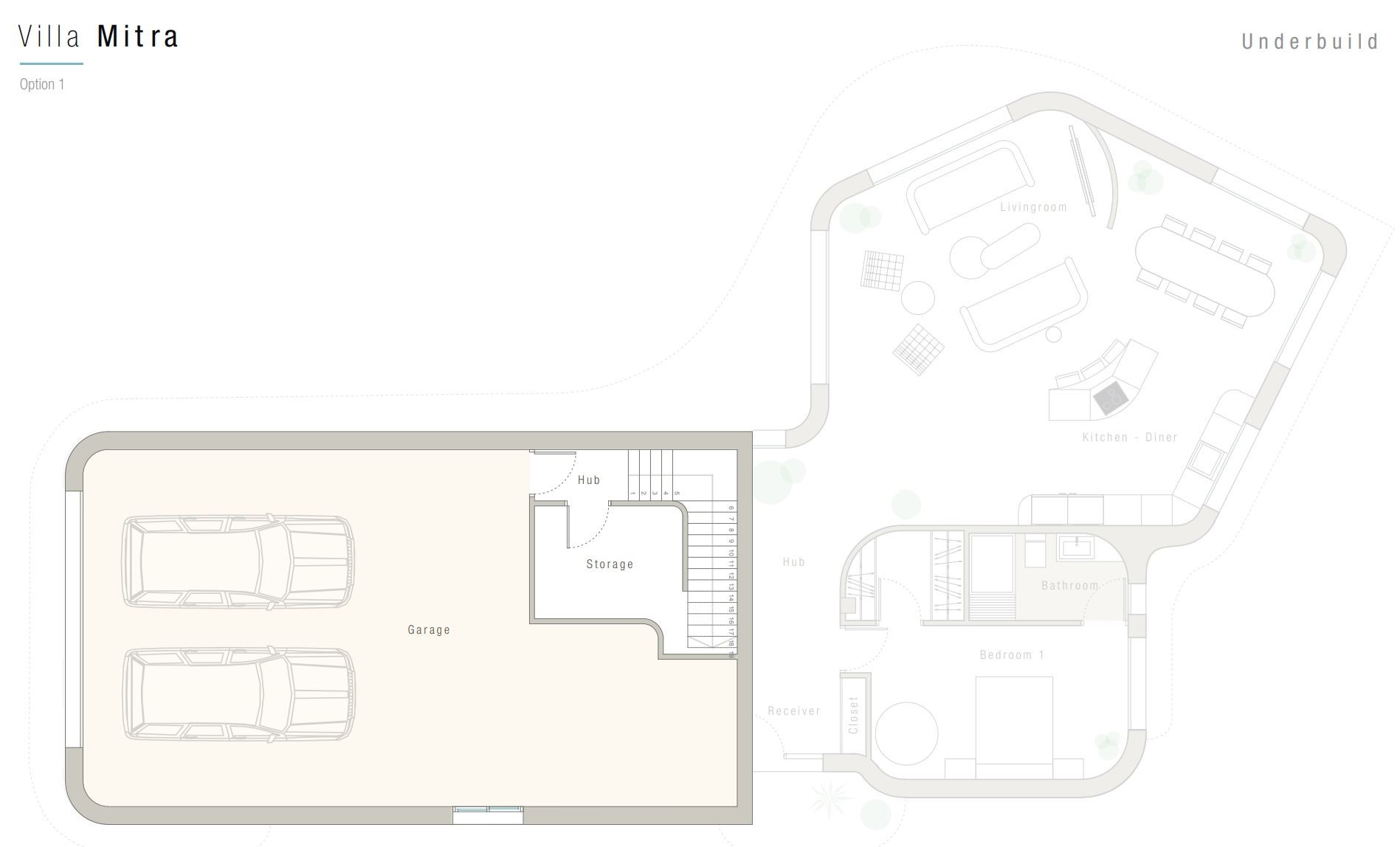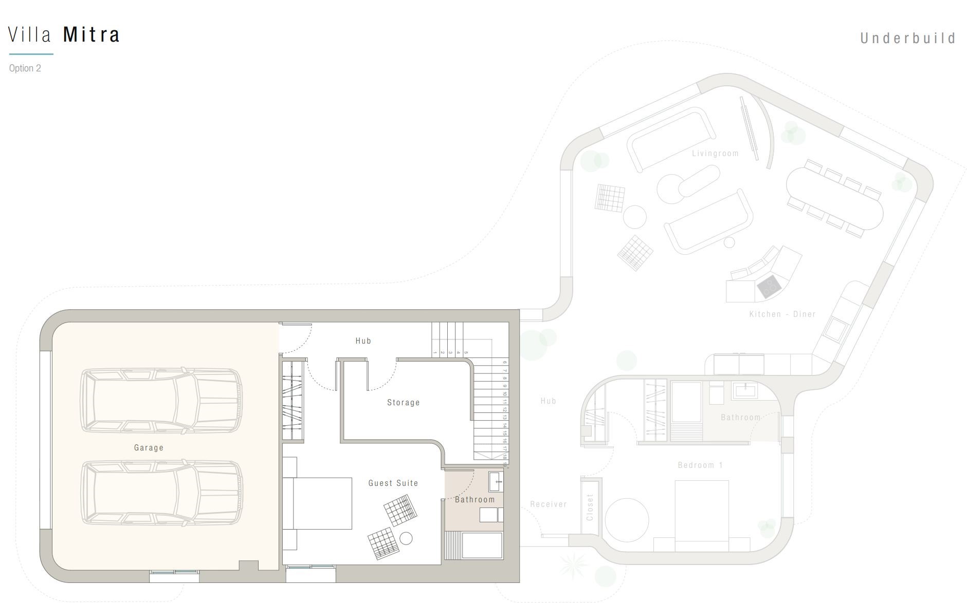 - Optioneel een gastenverblijf met badkamer-ensuite in de ondergrondse verdieping