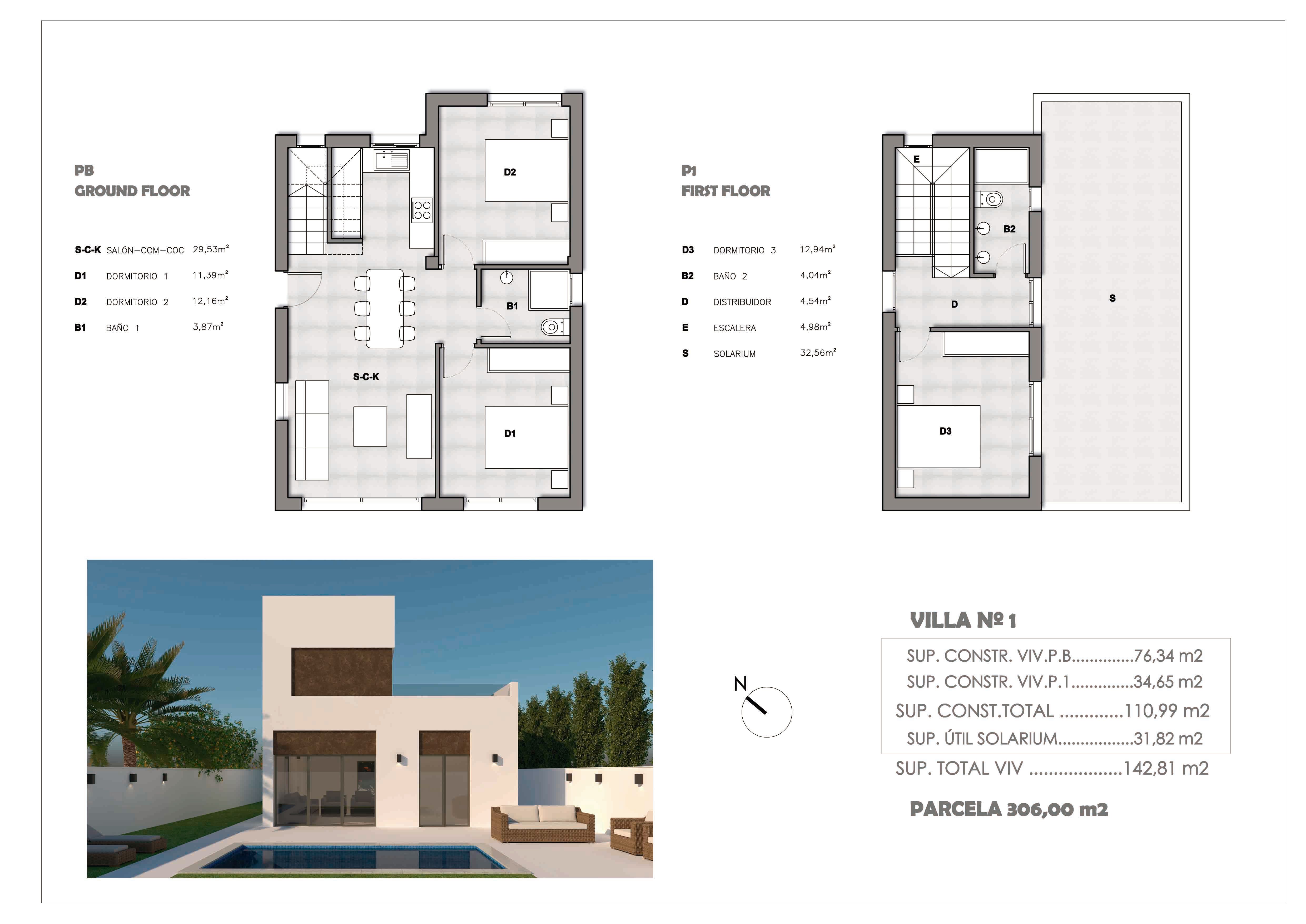 De nieuwbouw villa's in Rojales zijn prachtige woningen, gebouwd over twee verdiepingen met 3 slaapkamers, 2 badkamers, een open keuken met zithoek en een groot terras.
